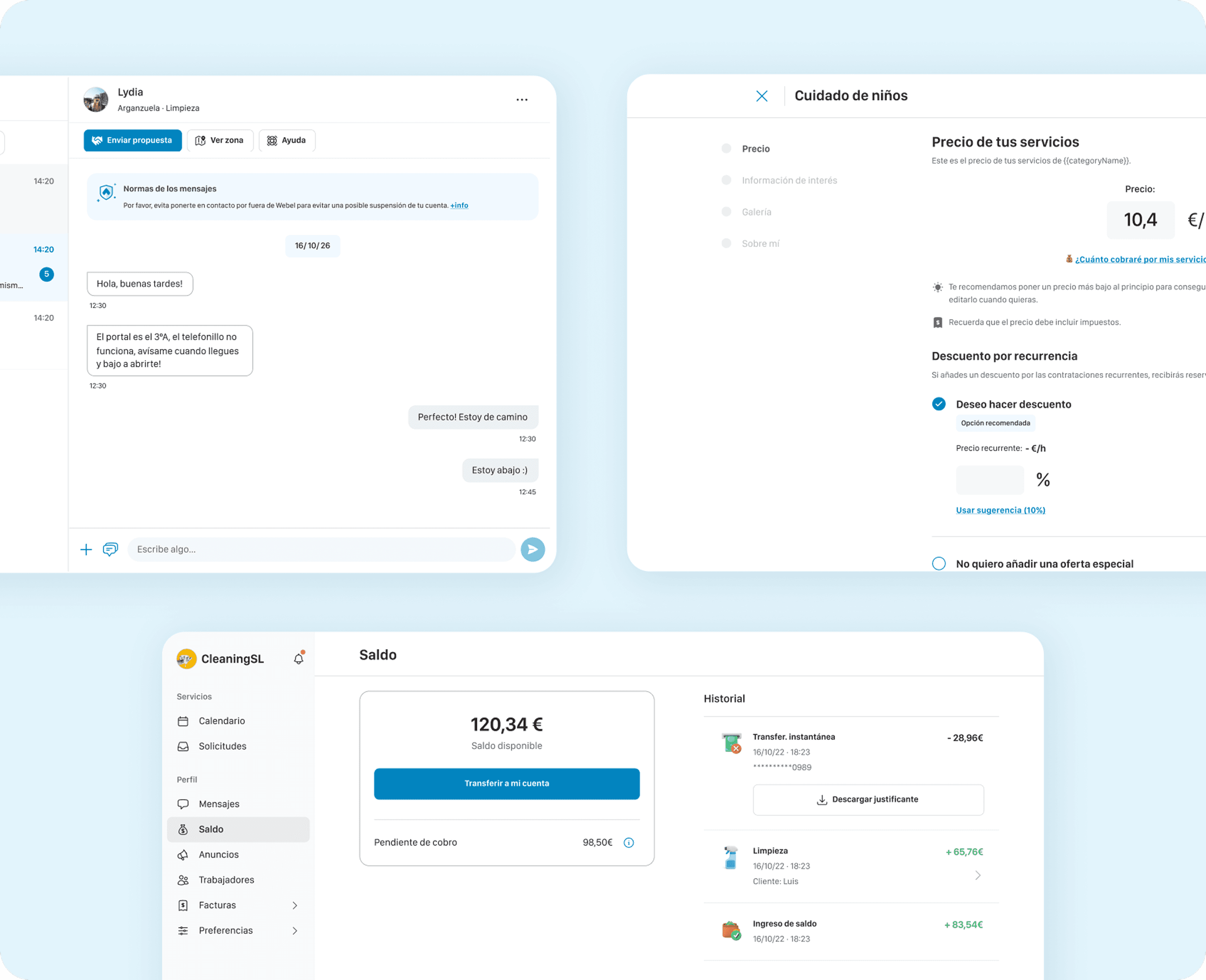 Webel was originally designed as a marketplace for individual service providers. Availability and booking logic were built around a single worker model: once a request was accepted, the time slot was automatically blocked in the professional’s calendar.